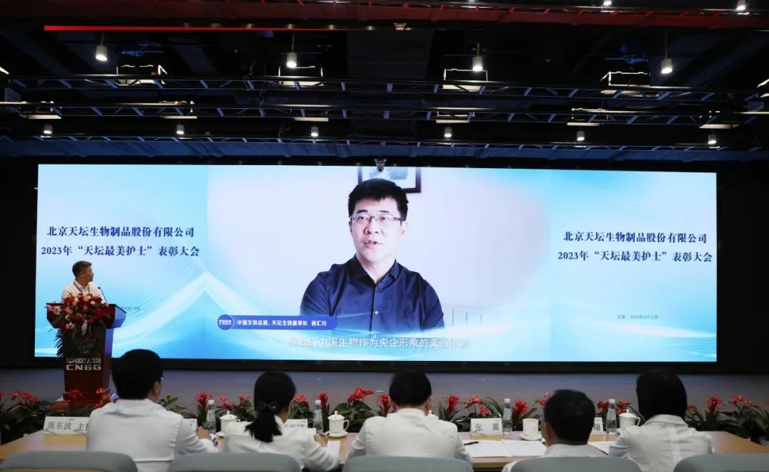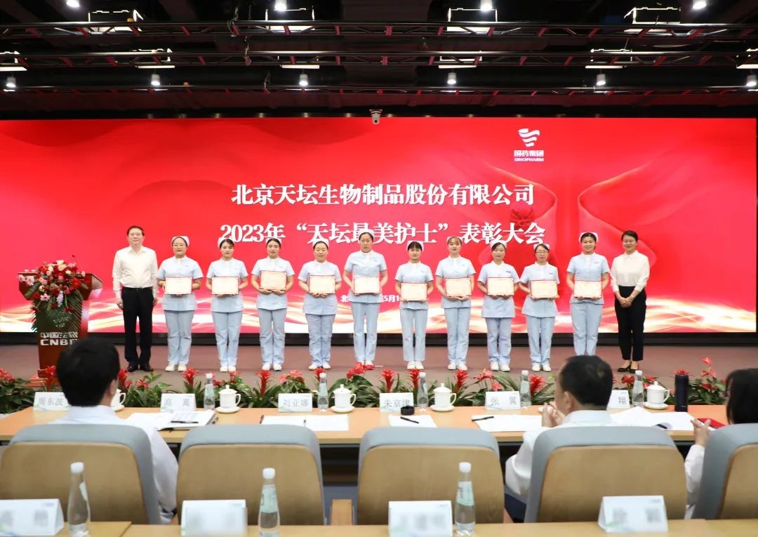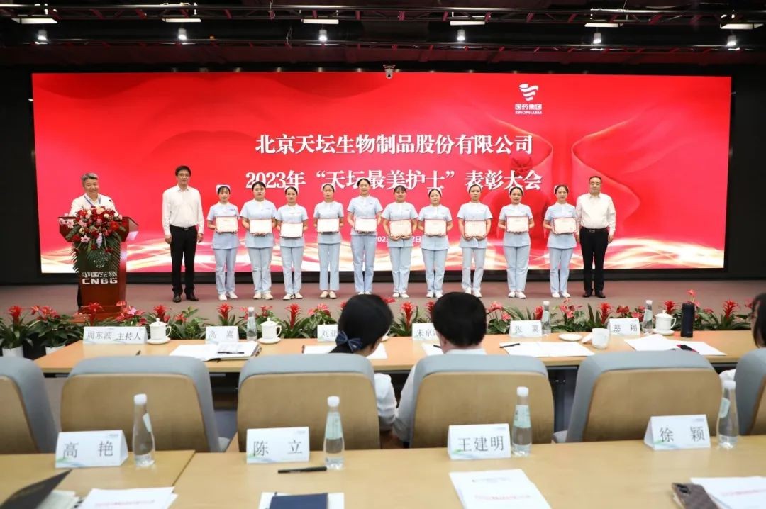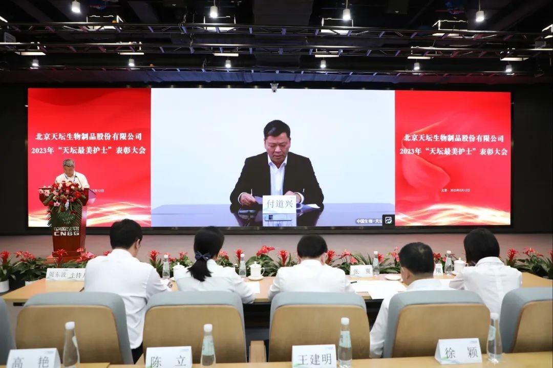 5月12日,2023年“天壇最美護(hù)士”表彰大會(huì)在北京舉行。中國生物黨委書記朱京津,天壇生物總經(jīng)理付道興,黨委書記劉亞娜,副總經(jīng)理何彥林,副總經(jīng)理兼財(cái)務(wù)總監(jiān)張翼,紀(jì)委書記高嵩出席會(huì)議。天壇生物常務(wù)副總經(jīng)理周東波主持會(huì)議。