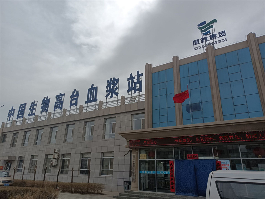 始終堅持“關愛生命,呵護健康”企業理念,緊抓“三化管理”, 建設“三型漿站”,發揮漿站“四個點”作用中國生物高臺血漿站,隸屬于國務院國資委直接管理的中央企業--中國醫藥集團有限公司,于2013年獲得甘肅省衛生健康行政部門批準,由國藥集團蘭州生物制藥有限公司設置,2016 年1月獲得《單采血漿許可證》執業采漿。血漿站位于甘肅省張掖市高臺縣巷正路69號,采漿區域為:高臺縣、臨澤縣、肅南裕固族自治縣(不含皇城鎮)、甘州區(不含花寨鄉及安陽鄉)、酒泉市、嘉峪關市。