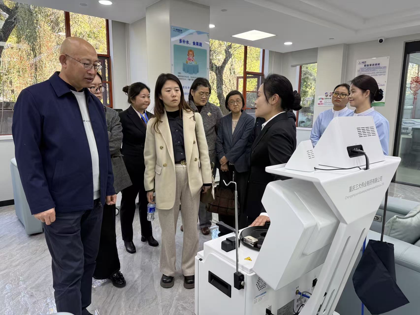 在石林漿站,調(diào)研組實(shí)地走訪了獻(xiàn)血漿者接待區(qū)、采漿操作區(qū)、血漿儲(chǔ)存冷鏈間等全流程區(qū)域,詳細(xì)了解獻(xiàn)血漿者身份核驗(yàn)、健康征詢、無菌采漿操作、血漿即時(shí)檢測及低溫儲(chǔ)運(yùn)管理等環(huán)節(jié)的標(biāo)準(zhǔn)規(guī)范與質(zhì)量管控措施,并就獻(xiàn)血漿者健康管理、血漿源頭質(zhì)量保障等議題與現(xiàn)場人員進(jìn)行了充分溝通。