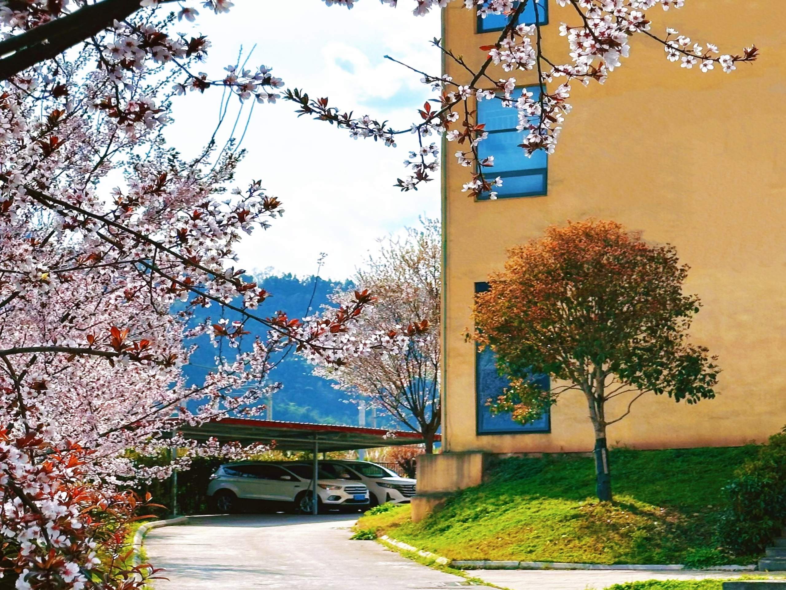 窗外云卷云舒,紅楓掩映著白色樓體,讓嚴謹的業務樓多了幾分春日的靈動與生機。處處皆是溫柔的春意。