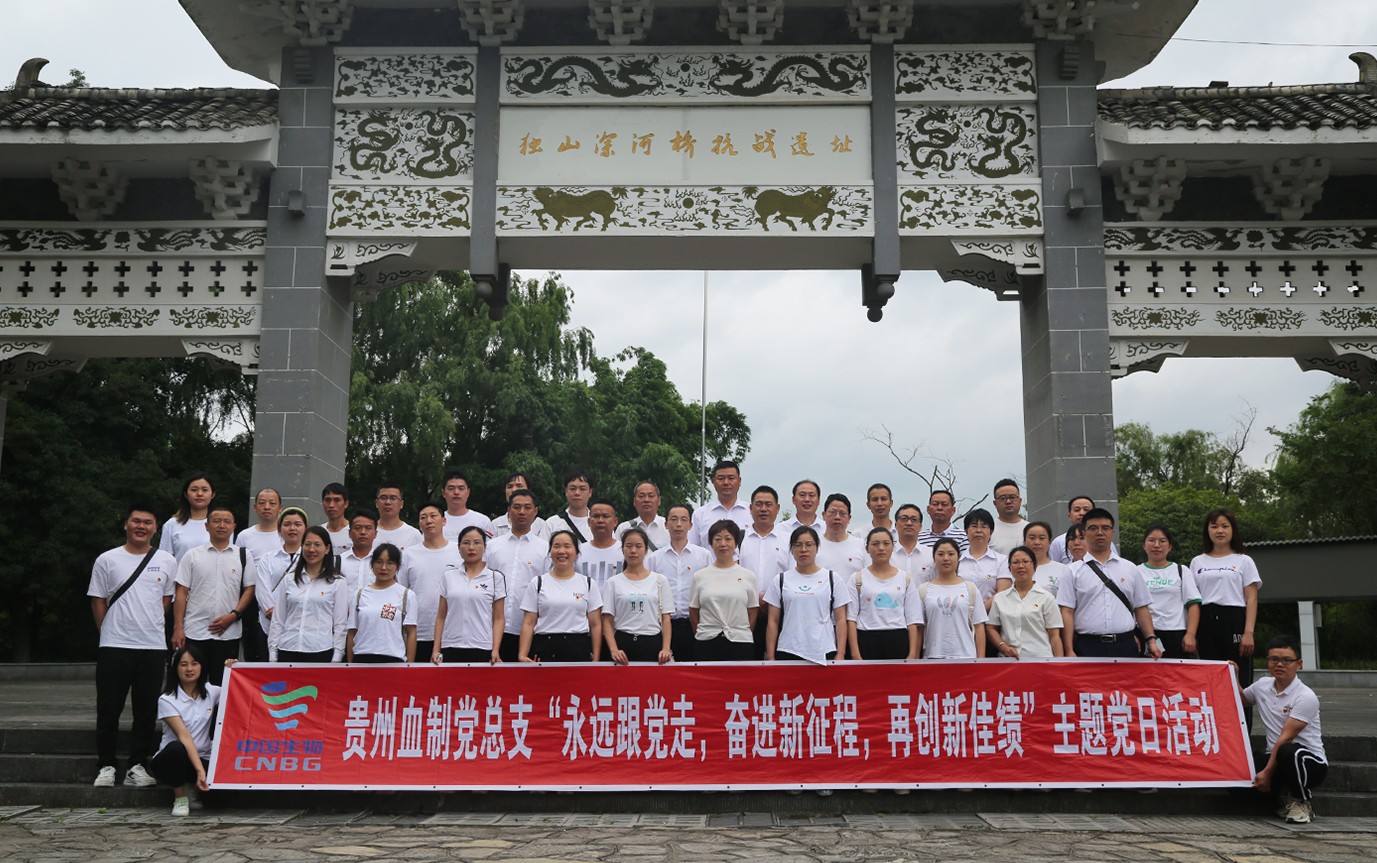 貴州血制黨總支組織黨員、團員及工會代表到貴州省獨山縣“深河橋抗日文化園”紅色教育基地開展了“永遠跟黨走,奮進新征程,再創新佳績”的七一主題紅色黨日活動。通過實地參觀紅色革命歷史長廊,聆聽革命將士在征戰獨山時發生的戰斗事跡,向烈士敬獻花籃等形式,回顧紅色革命歷史,傳承先輩奉獻精神。