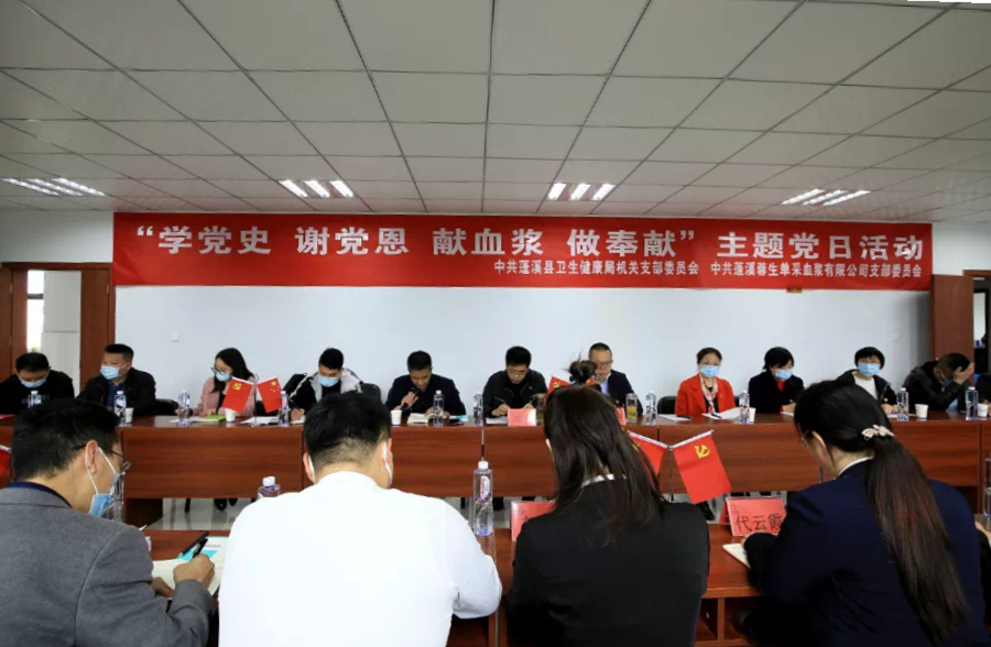 為紀念中國共產黨建黨100周年,充分發揮黨員先鋒模范作用。4月9日上午,蓬溪縣衛健局黨組書記、局長張啟先帶領縣局40余名黨員干部來到中國生物蓬溪血漿站開展“學黨史、謝黨恩、獻血漿、做奉獻”主題黨日活動。