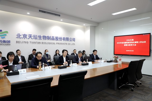 會議傳達學習了國資委、國藥集團、中國生物黨委黨風廉政建設和反腐敗工作會議精神,總結了2022年天壇生物全面從嚴治黨工作情況,對2023年推進黨風廉政建設和反腐敗工作提出要求。