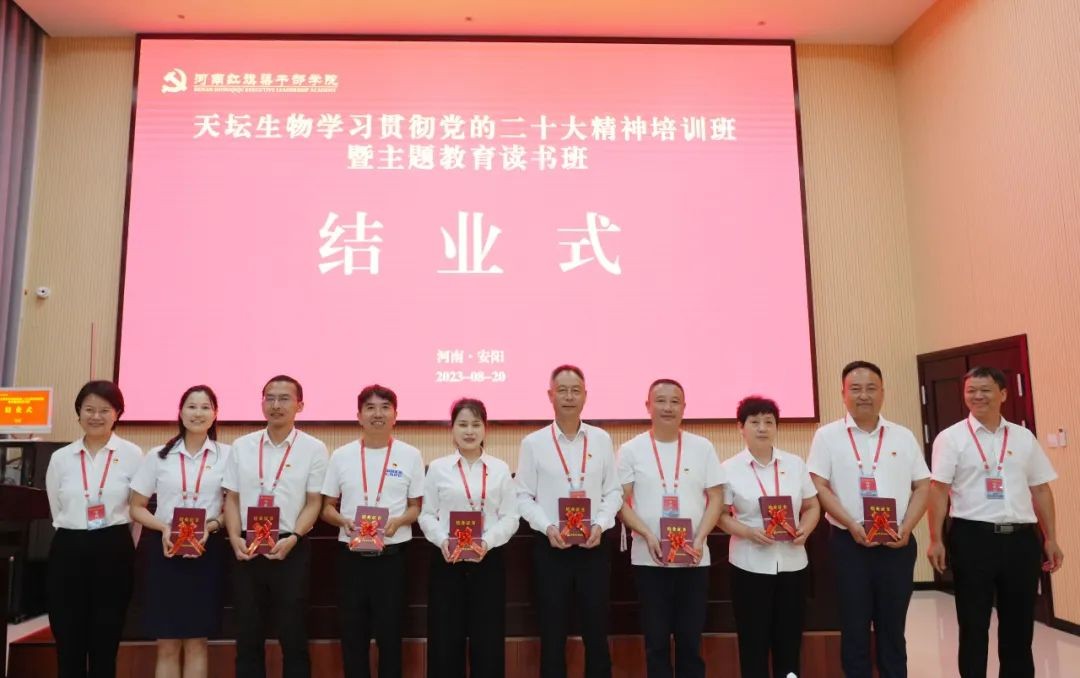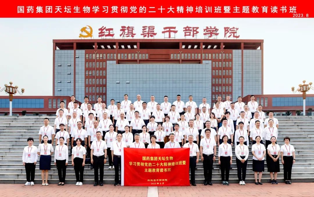 8月17-21日,天壇生物在紅旗渠干部學院舉辦學習貫徹黨的二十大精神培訓班暨主題教育讀書班。天壇生物黨委班子成員、董事會秘書、首席科學家出席開班儀式,血制公司黨組織書記、本部各黨支部書記、漿站黨支部書記及黨群工作部負責同志共80人參加培訓。