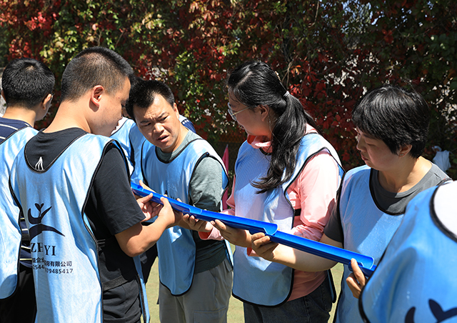 大家齊聚訓(xùn)練營,在工作人員的組織下開始了1小時(shí)徒步熱身活動(dòng)。隨后,來自不同部門的員工隨機(jī)分為四組,各組成員分別設(shè)計(jì)了獨(dú)具特色的隊(duì)名、隊(duì)徽、口號和隊(duì)型,全身心地投入到“毛毛蟲”、“雷霆戰(zhàn)鼓”、“流程管理”等趣味拓展活動(dòng)中。大家興致勃勃,在陽光下?lián)]灑熱情,盡情享受著素質(zhì)拓展的暢快。小組成員間沒有了距離感,各自發(fā)揮智慧,齊心協(xié)力,朝著共同的目標(biāo)努力,在參與中感悟團(tuán)隊(duì)精神,領(lǐng)會(huì)合作雙贏的真諦。